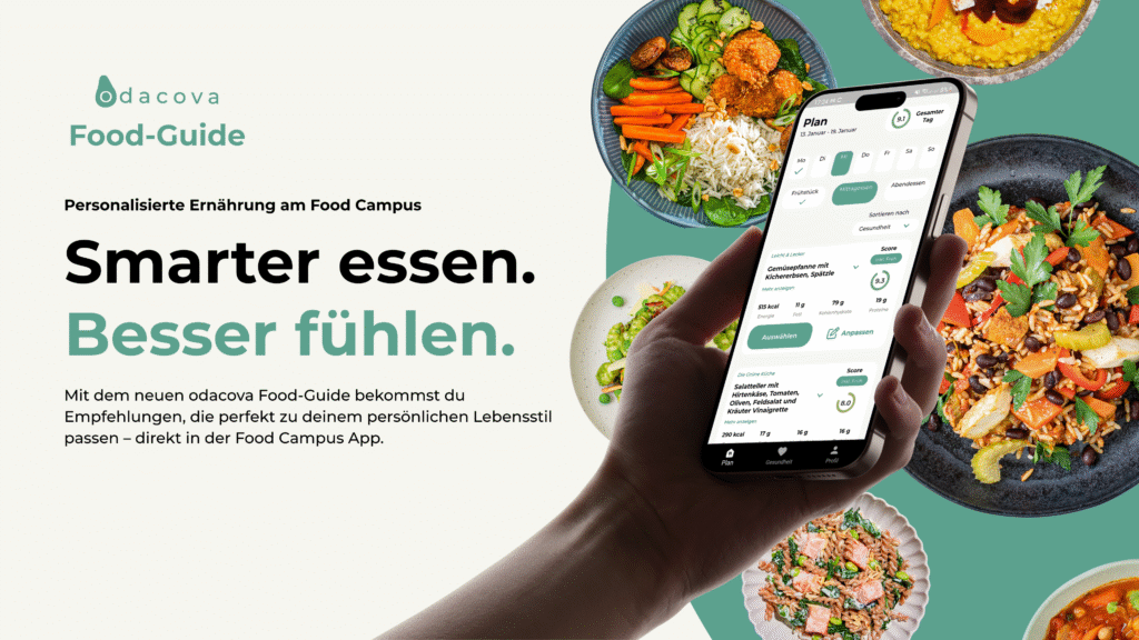 Ob proteinreich, vegetarisch oder einfach ausgewogen – der odacova Food-Guide kennt deine Bedürfnisse und hilft dir, jeden Tag die richtige Wahl zu treffen.
